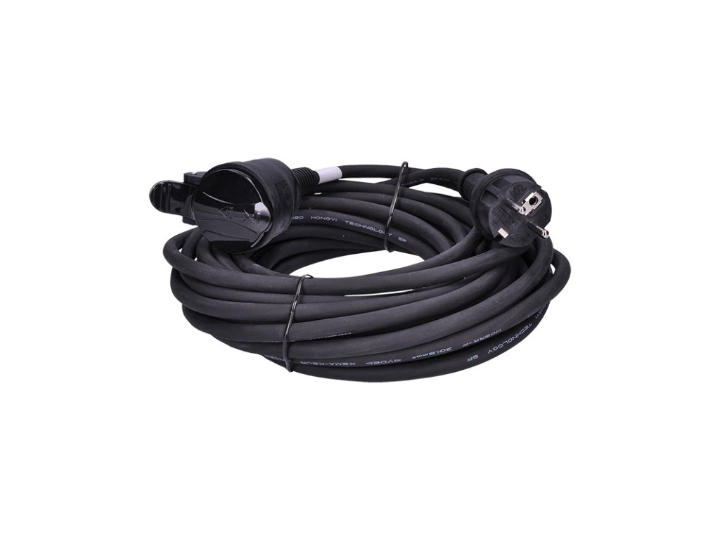 Odolný gumový kabel typu s průřezem vodičů 1,5 mm² odolává střednímu mechanickému namáhání i zhoršeným klimatickým podmínkám. Můžete se na něj spolehnout všude tam, kde klasický PVC kabel už nestačí. Samozavírací víčko chrání zásuvku před vodou a prachem.