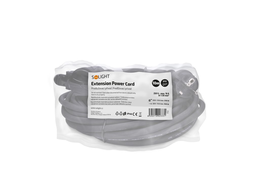Solight prodlužovací přívod - spojka, 1 zásuvka, 10m, 3 x 1,5mm2, gumová, černá