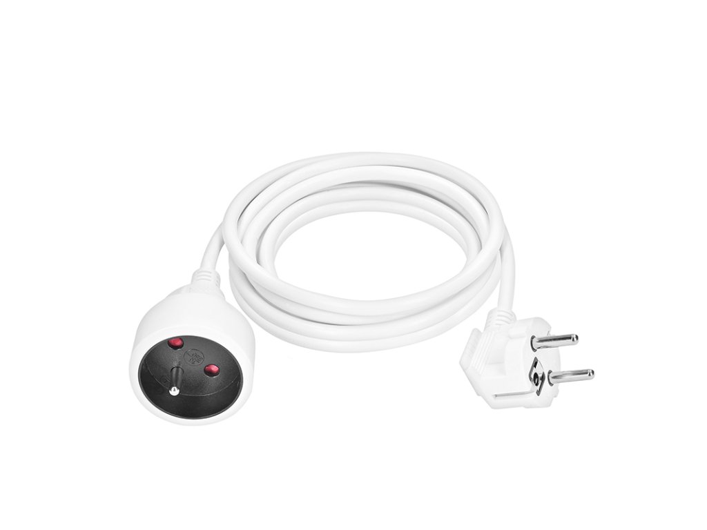 Kompaktní bílý prodlužovací kabel s délkou 3 metry a jednou zásuvkou je ideální pro jednoduché prodloužení elektrické energie v domácnosti, kanceláři nebo dílně. Vhodný pro připojení samostatného zařízení mimo dosah pevné zásuvky.