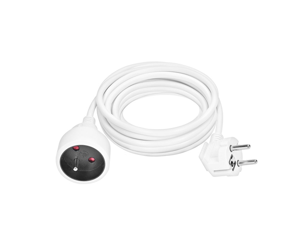 Kompaktní bílý prodlužovací kabel s délkou 15 metrů a jednou zásuvkou je ideální pro jednoduché prodloužení elektrické energie v domácnosti, kanceláři nebo dílně. Vhodný pro připojení samostatného zařízení mimo dosah pevné zásuvky.