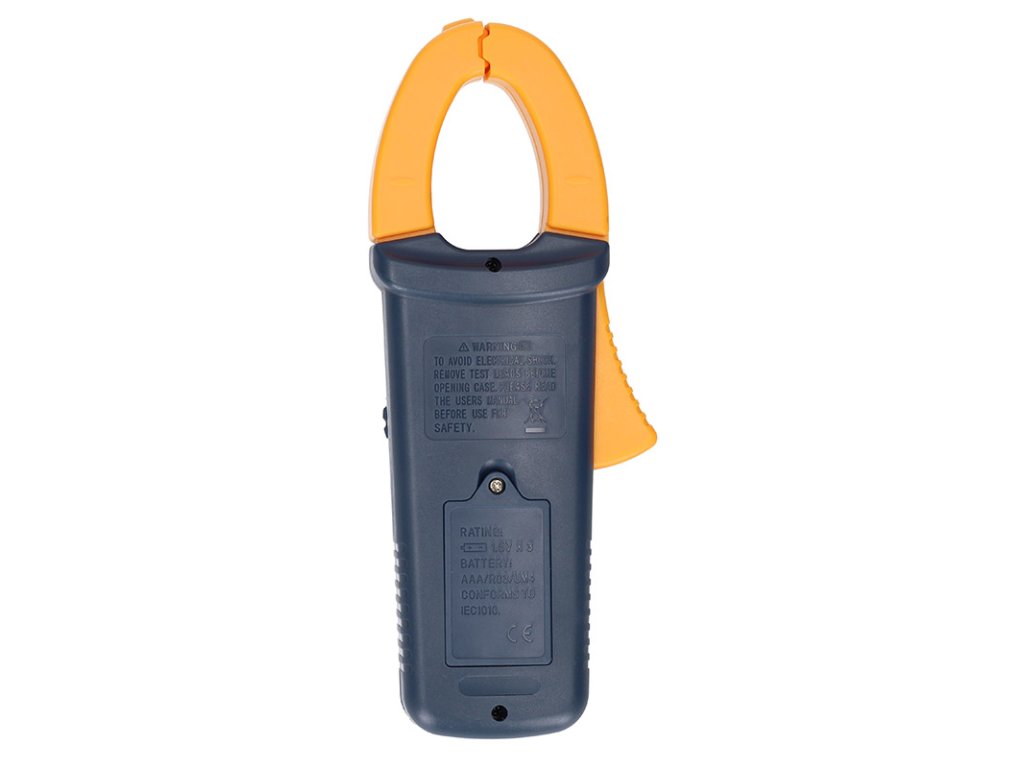 Digitální multimetr s max. zobrazením 6000 hodnot a podsvíceným LCD displejem (34 × 48 mm). Nabízí automatický nebo manuální výběr rozsahu a automatické vypnutí po 15 minutách nečinnosti. Měří DC napětí (0,1 mV – 1000 V), AC napětí (0,1 mV – 750 V, True-RMS), AC proud (10 mA – 1000 A, True-RMS), odpor (0,1 ? – 60 M?), kapacitu (6 nF – 60 mF) a teplotu (-40 °C – 1370 °C). Funkce data hold, indikace maximálních a minimálních hodnot, frekvence (0 Hz – 10 MHz) a střída (0,01% – 99,9%). Diodový test, kontinuita s bzučákem, a klemové měření frekvence. Napájení: 3x AAA 1.5V baterie. Rozměry: 240 × 95 × 40 mm, hmotnost: 342 g.