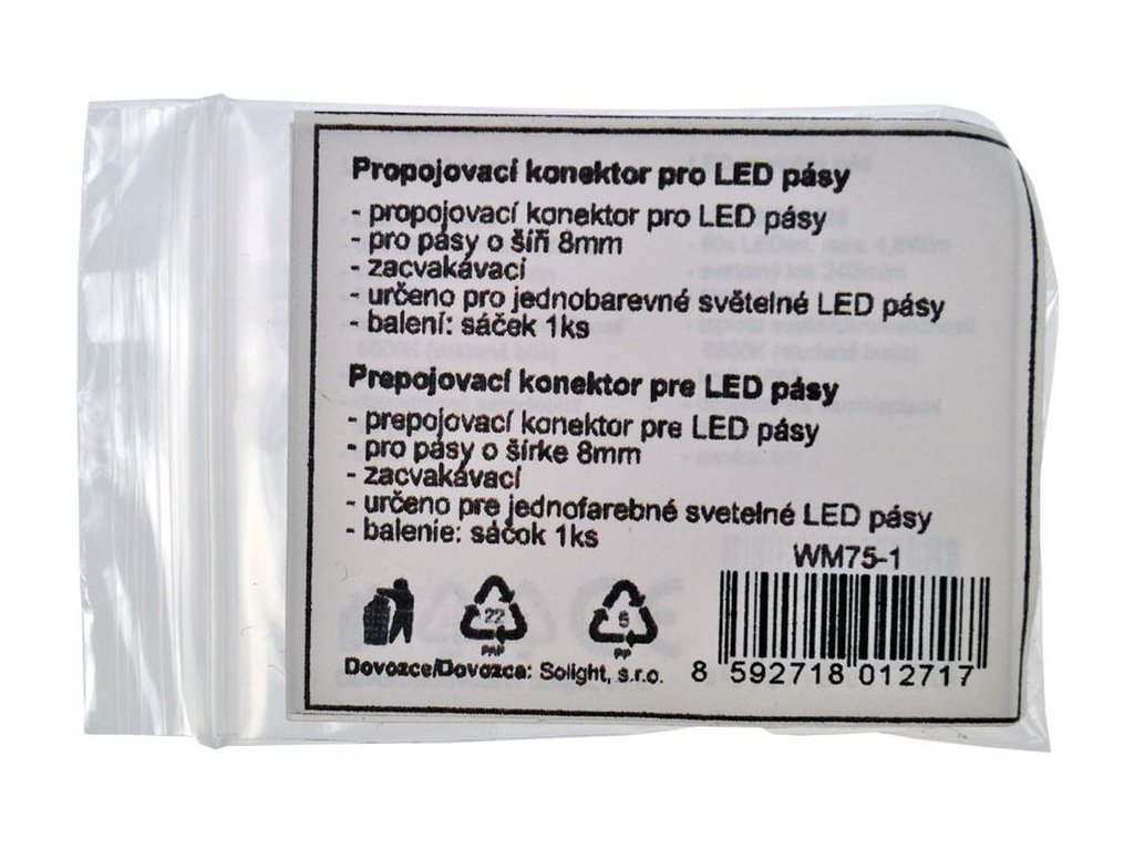 Solight propojovací konektor pro LED pásy, 8mm, zacvakávací, balení 1ks, sáček