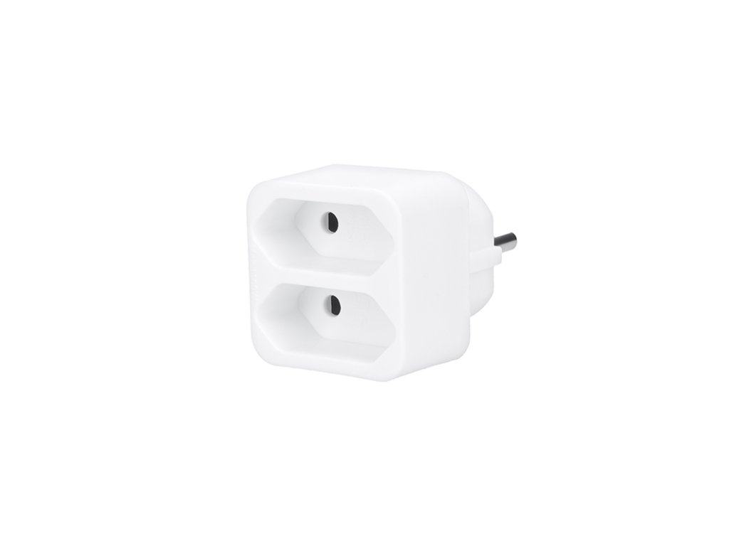 Tato jednoduchá rozbočka slouží k zapojení dvou neuzemněných spotřebičů s přívodními šňůrami s plochou vidlicí. Lampička, set-top-box, apod.