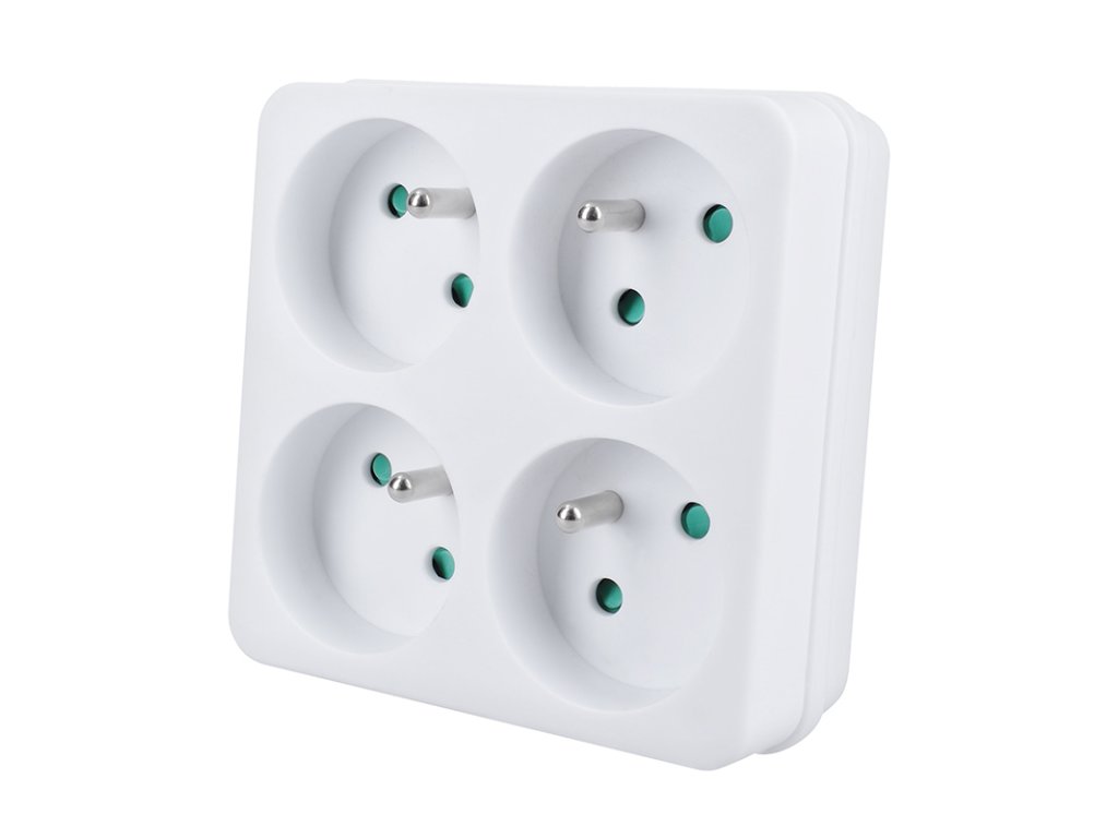 Čtyři zásuvky v minimalistickém těle zvládnou celkovou zátěž až 3680 W a umožní připojit běžné spotřebiče v obýváku, ložnici nebo pracovně. Televize, set-top-box, router, apod. Díky natočení horních zásuvek lze lehce manipulovat s přívodními šňůrami ve spodních zásuvkách. Všechny kabely směřují směrem dolů a netrčí různě v prostoru. Zásuvky jsou navíc vybaveny dětskými pojistkami, které zajistí bezpečný provoz i v domácnostech s dětmi. Díky kompaktnímu provedení nezabere zbytečně místo.