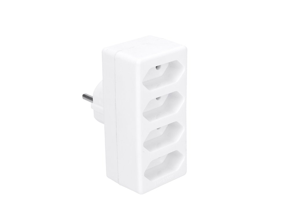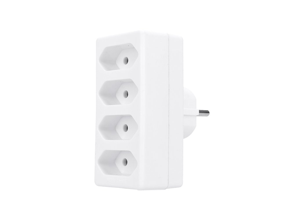 Tato jednoduchá rozbočka slouží k zapojení až čtyř neuzemněných spotřebičů s přívodními šňůrami s plochou vidlicí. Lampička, set-top-box, router, bluetooth repro, apod.