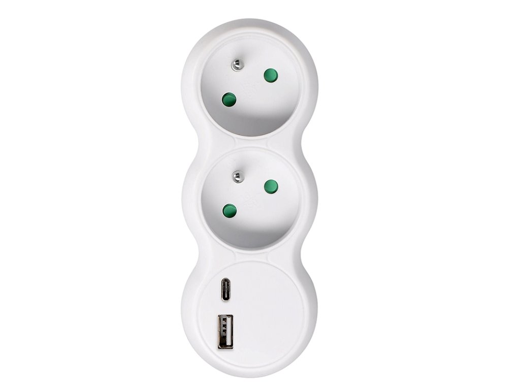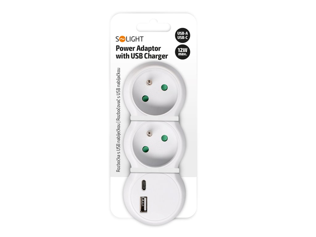 Solight rozbočka s USB A+C nabíječkou, 2 x 10A, bílá