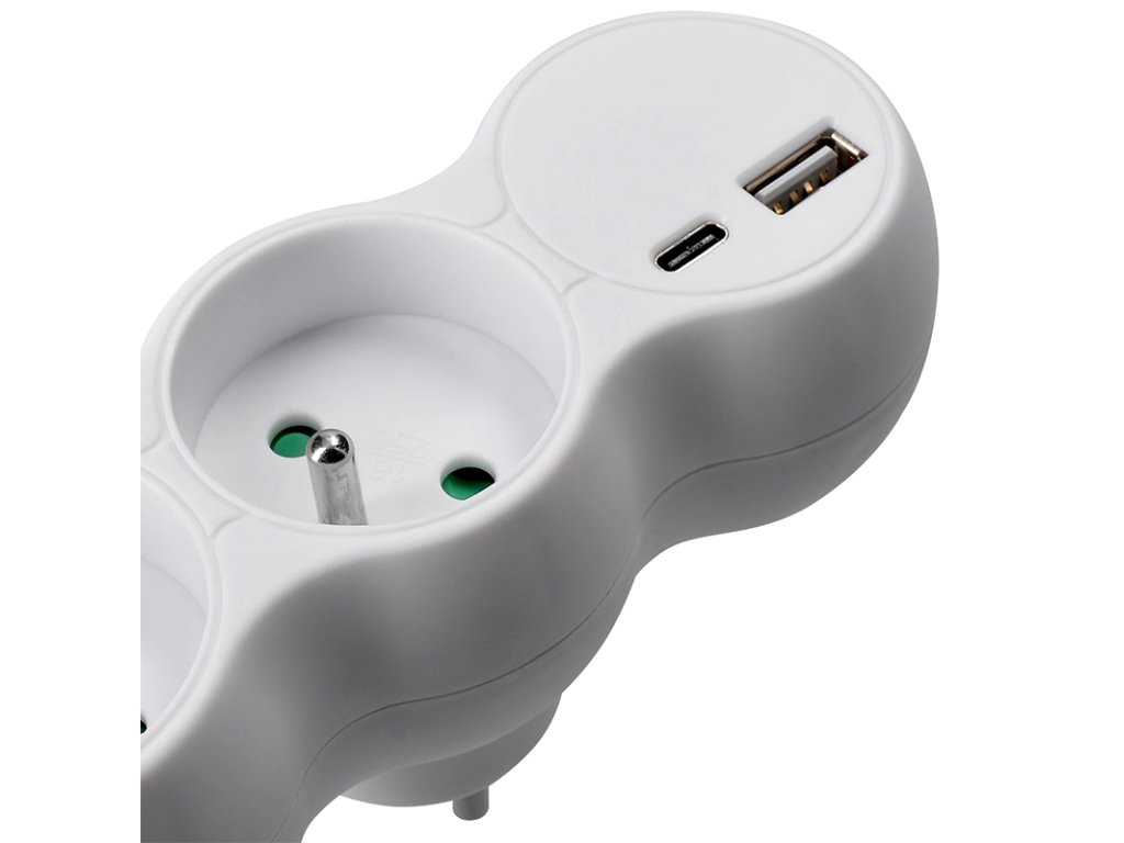 Dvě zásuvky zvládnou celkovou zátěž až 3680 W a umožní připojit jakýkoli spotřebič v kuchyni, obýváku, ložnici nebo dílně. Díky natočení horních zásuvek lze lehce manipulovat s USB kabely ve spodní zásuvce. Oba kabely spotřebičů směřují směrem dolů a netrčí různě v prostoru. Zásuvky jsou navíc vybaveny dětskými pojistkami, které zajistí bezpečný provoz i v domácnostech s dětmi. Díky USB-A a USB-C portům můžete pohodlně nabíjet i dvě zařízení současně. Perfektní pro veškerou USB elektroniku.