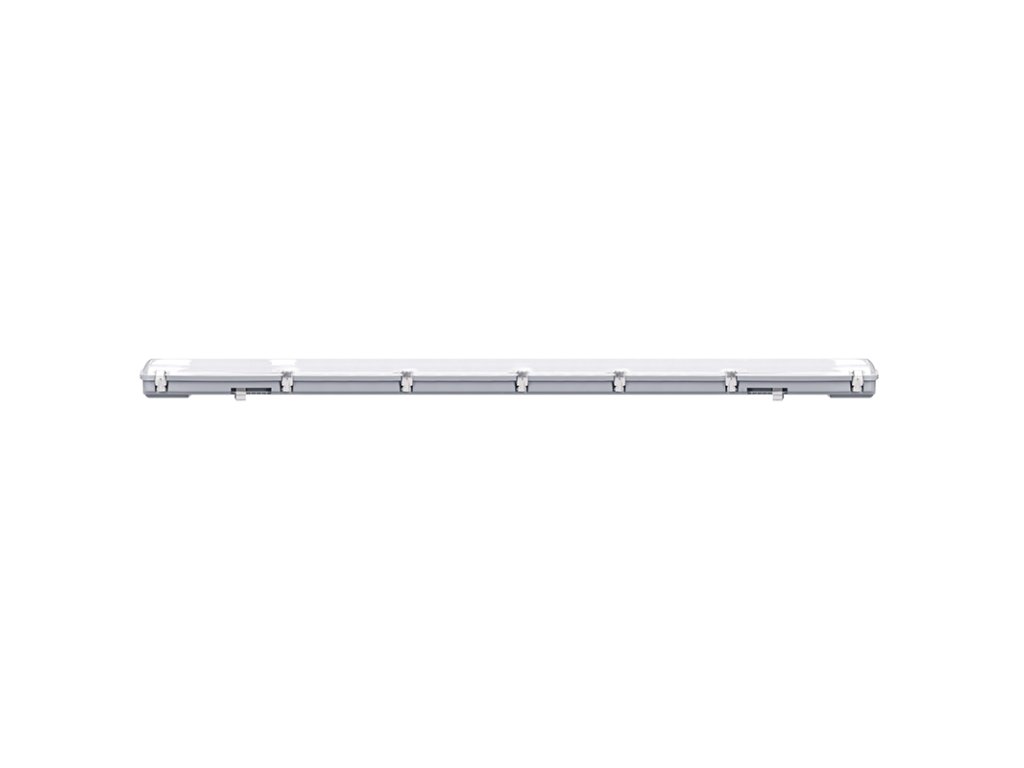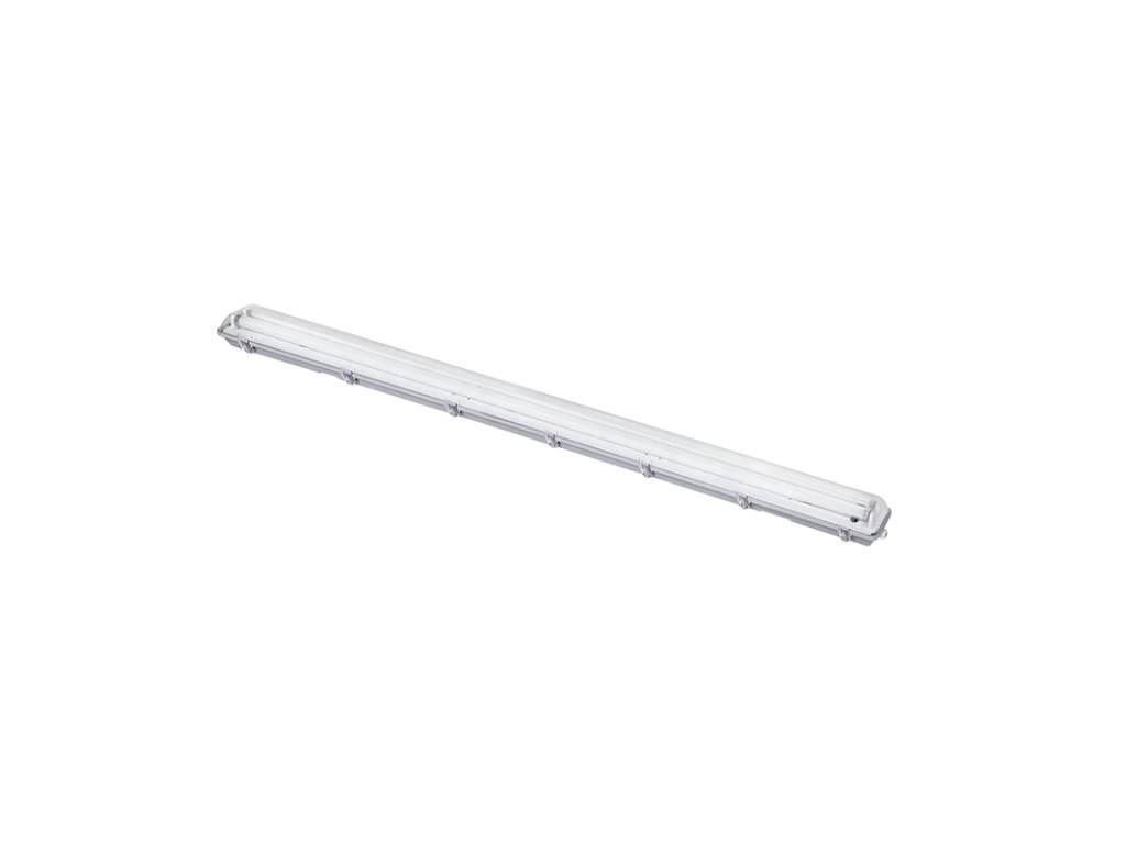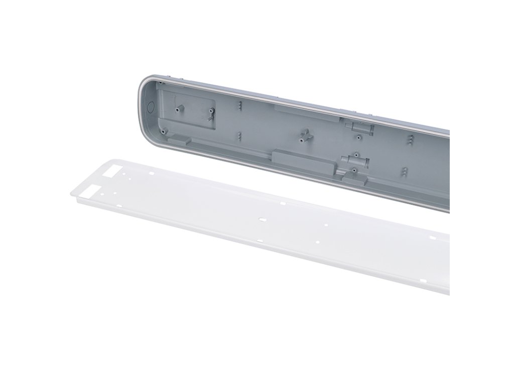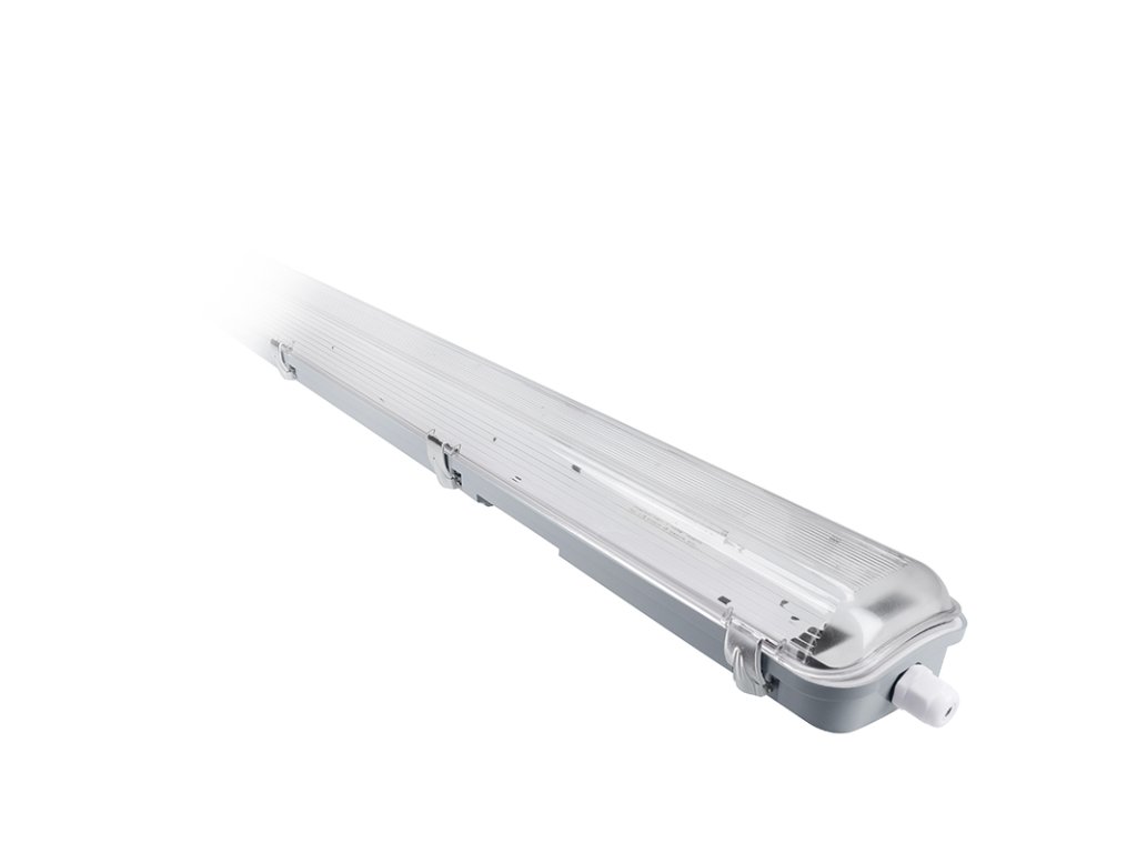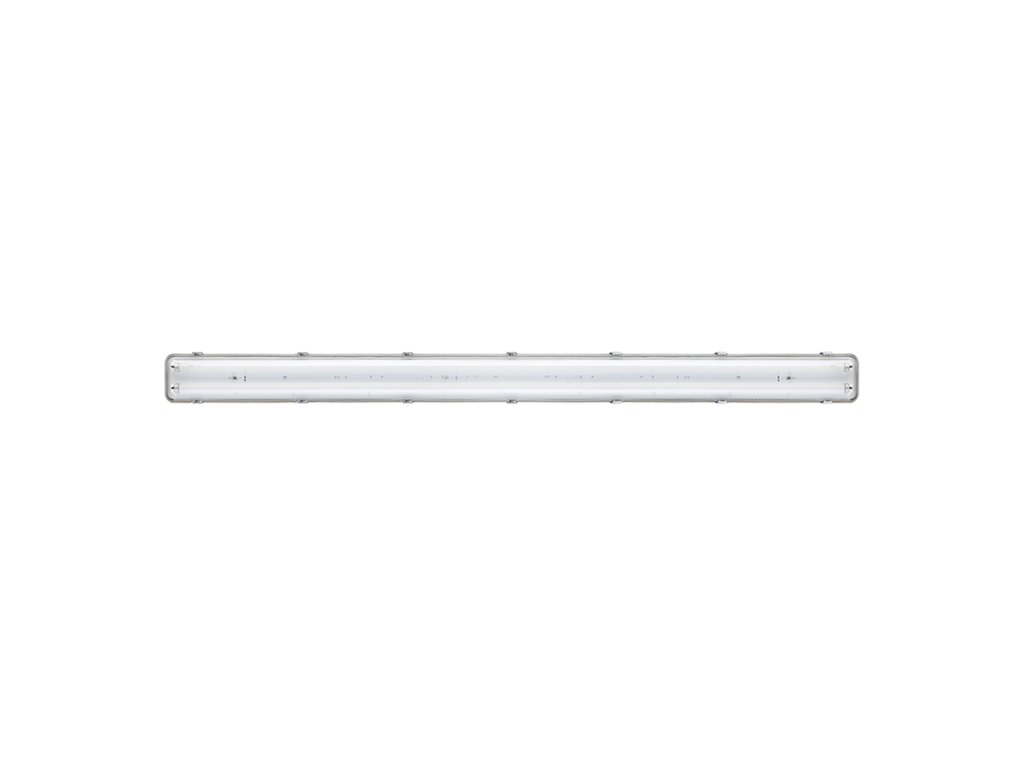 Svítidlo je vybaveno paticemi G13 a čirým difuzorem, který zajišťuje rovnoměrné rozptýlení světla. Díky krytí IP65 je plně prachotěsné a voděodolné, takže se hodí i do náročnějších podmínek s vyšší vlhkostí nebo výskytem prachu.