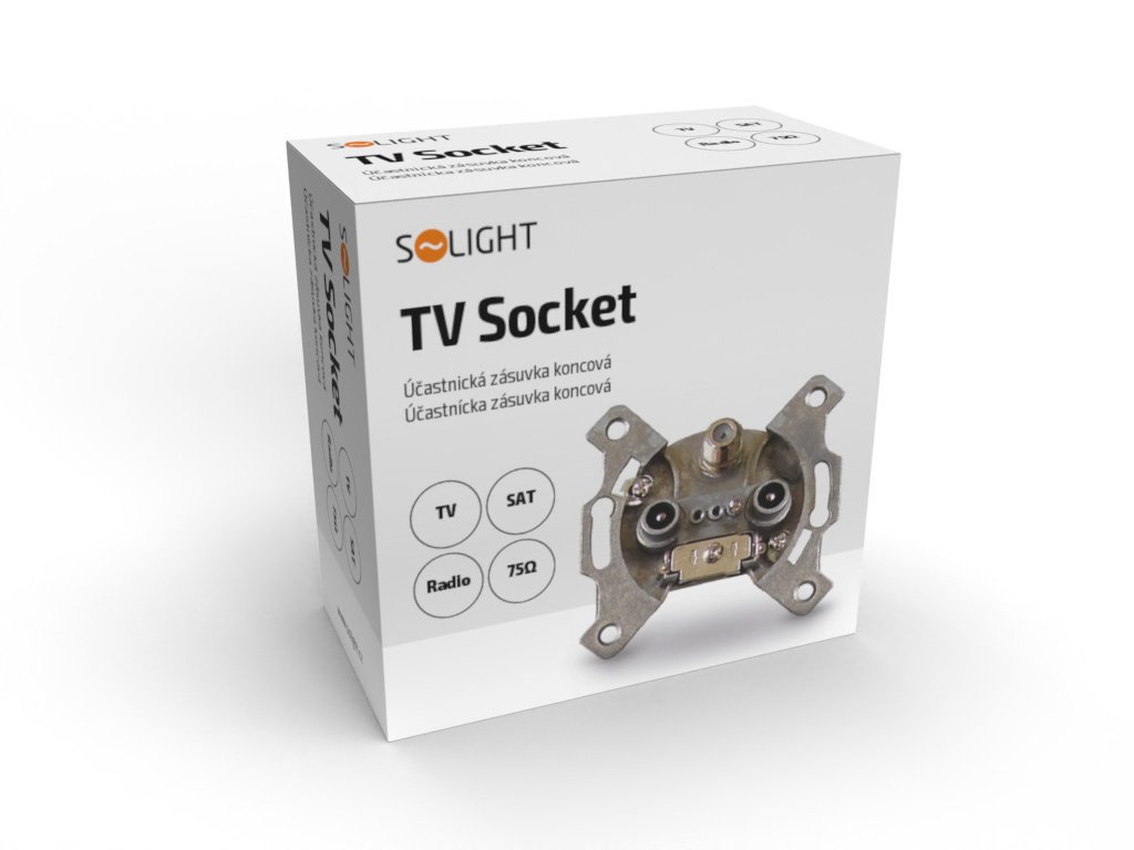 Koncová účastnická zásuvka určená pro rozvody signálu v domácnostech a bytových instalacích. Umožňuje připojení televize (TV), rádia (R) a satelitního přijímače (SAT). S nízkým útlumem 3 dB zajišťuje kvalitní přenos signálu bez výrazné ztráty.