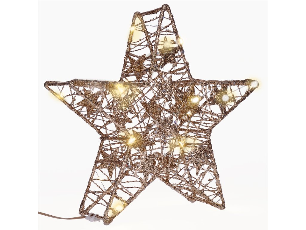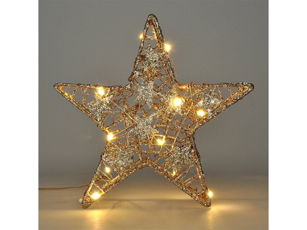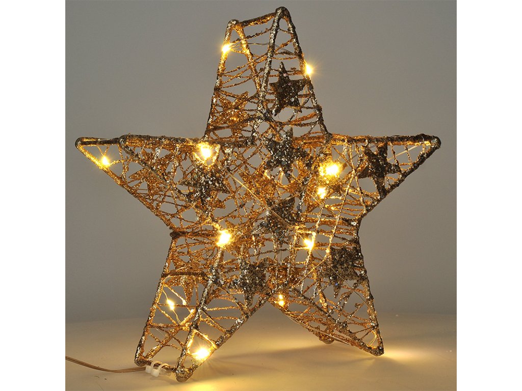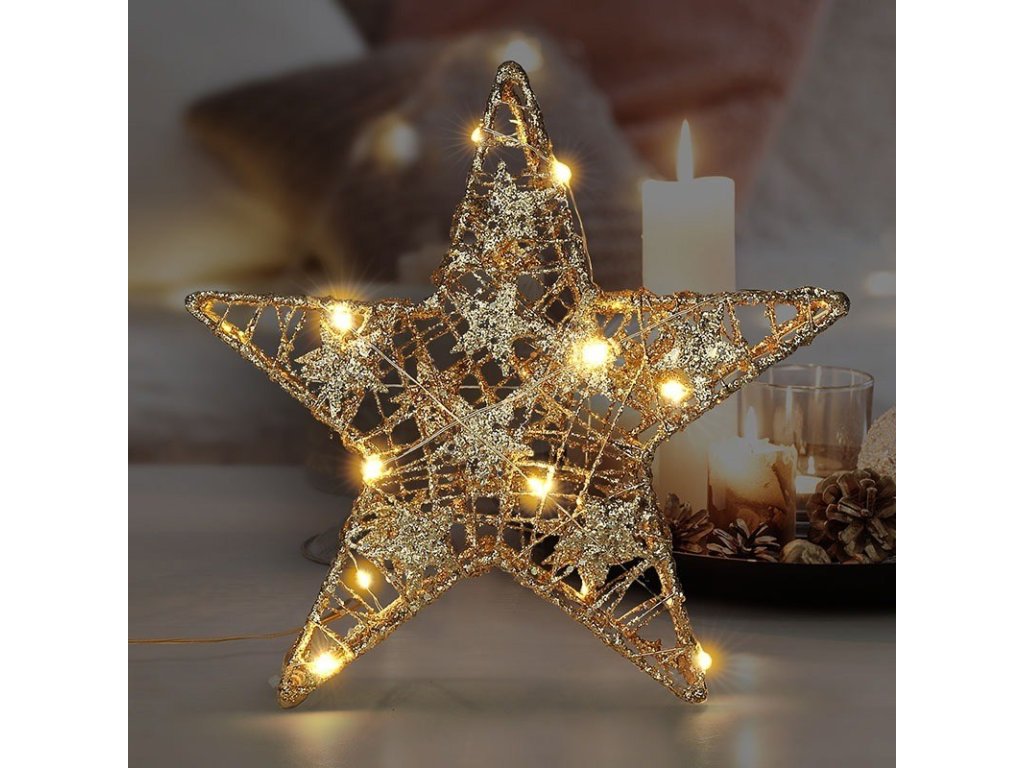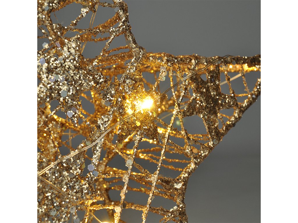 Solight vánoční hvězda glitter, zlatá, kovová, 14x LED, 2x AA
