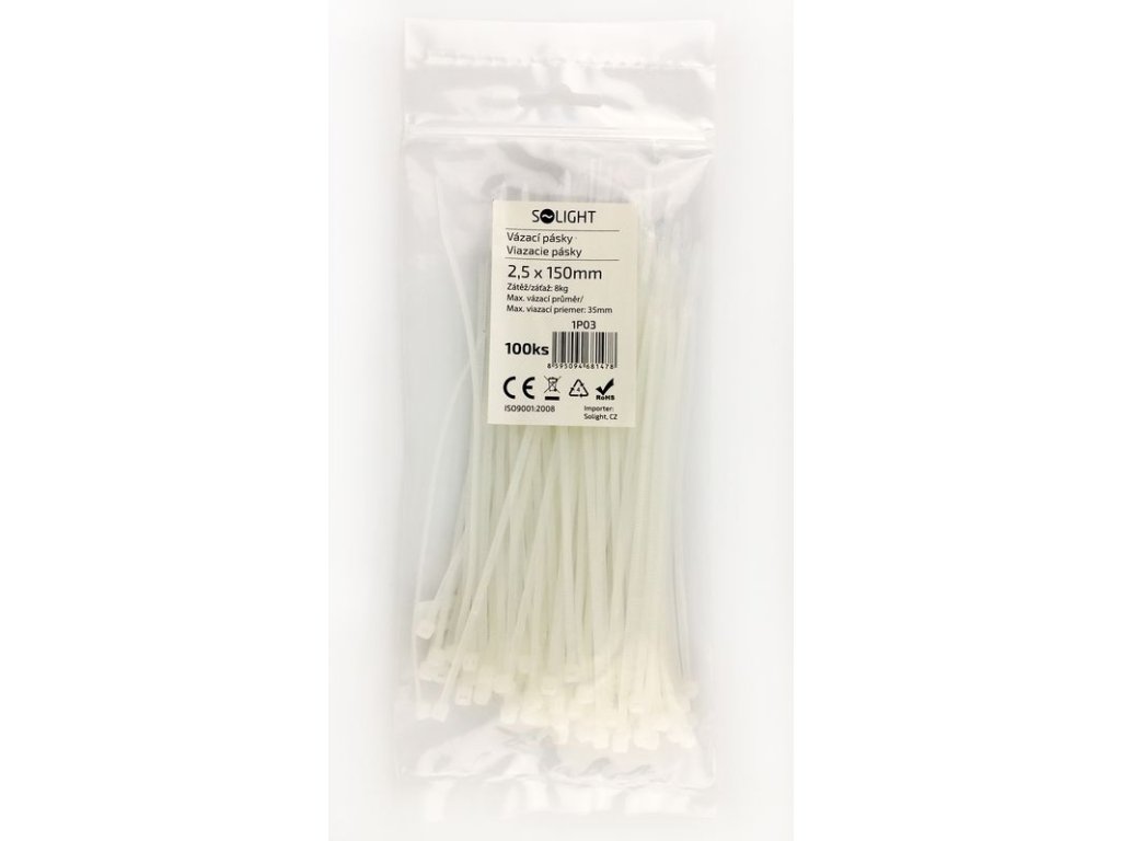 Solight vázací nylonové pásky, 2,5 x 150mm, natural, 100ks