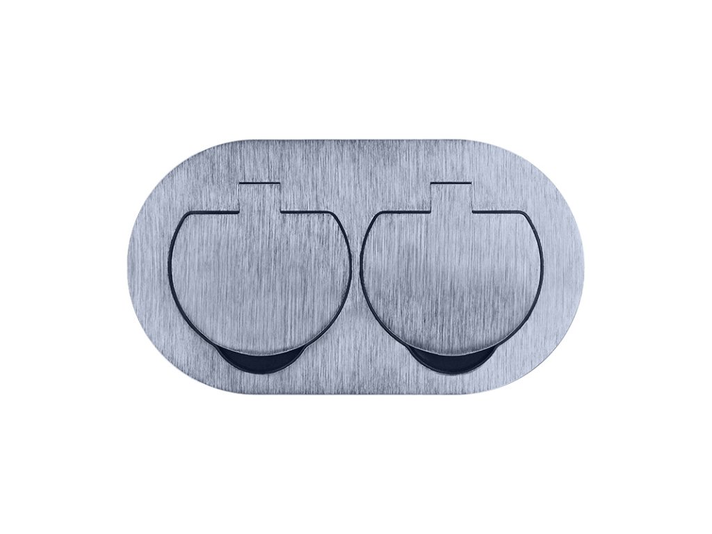 Vrchní kryt zásuvky je vyroben z odolné zinkové slitiny, která zajišťuje pevnost a zároveň ochranu proti korozi. Na povrchu nejsou viditelné žádné šrouby – montážní otvory zůstávají skryté pod každým víčkem. Díky tomu působí zásuvka elegantně a profesionálně a zároveň se snadno čistí.