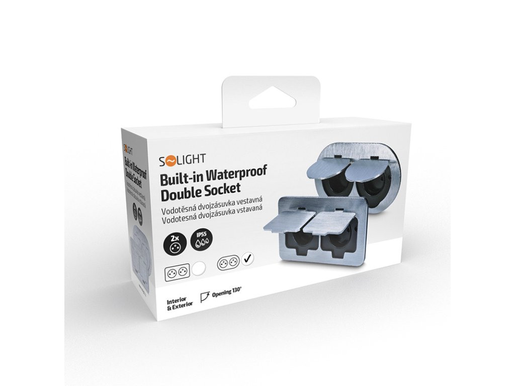 Solight vestavná podlahová dvojzásuvka, IP55, kulaté víčko
