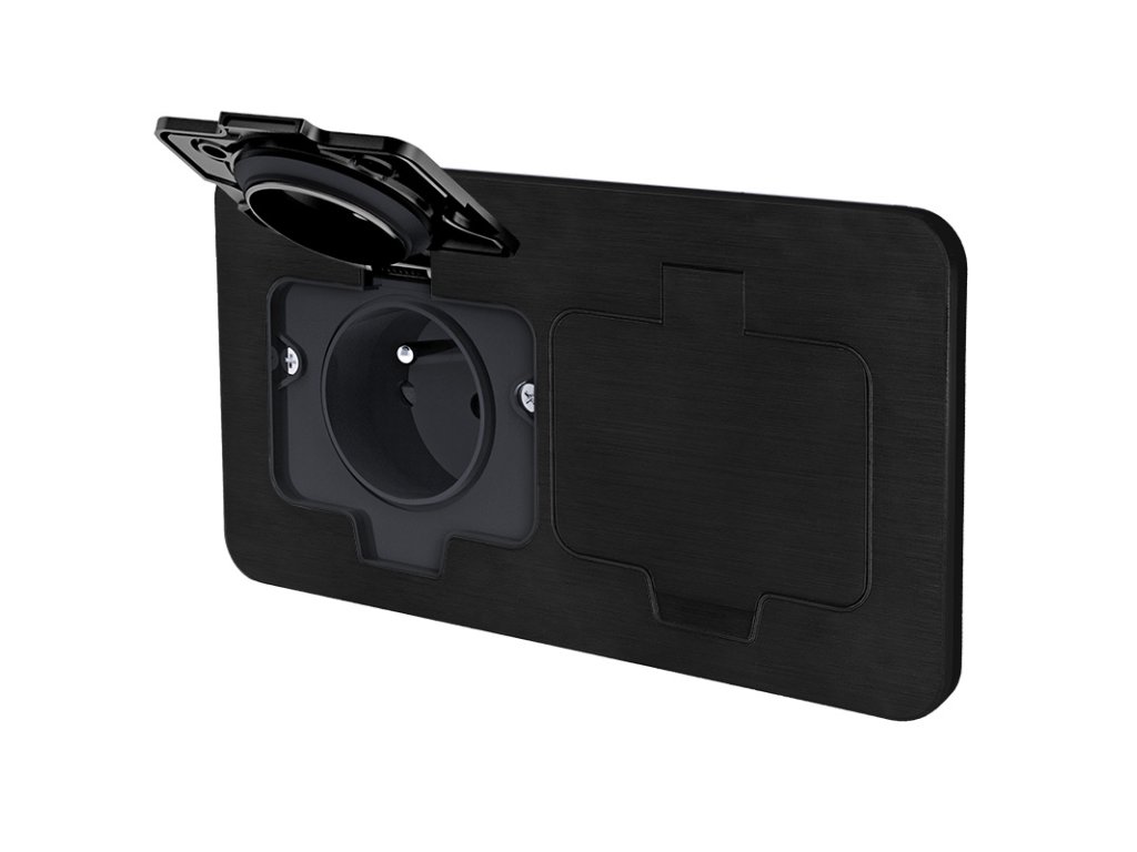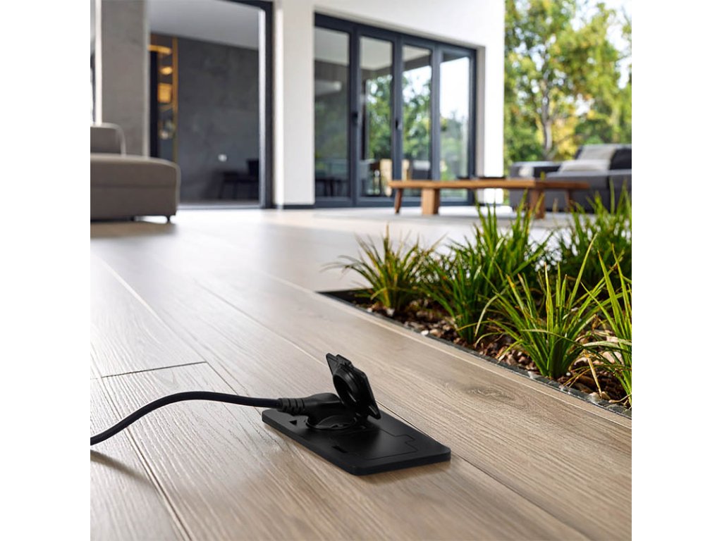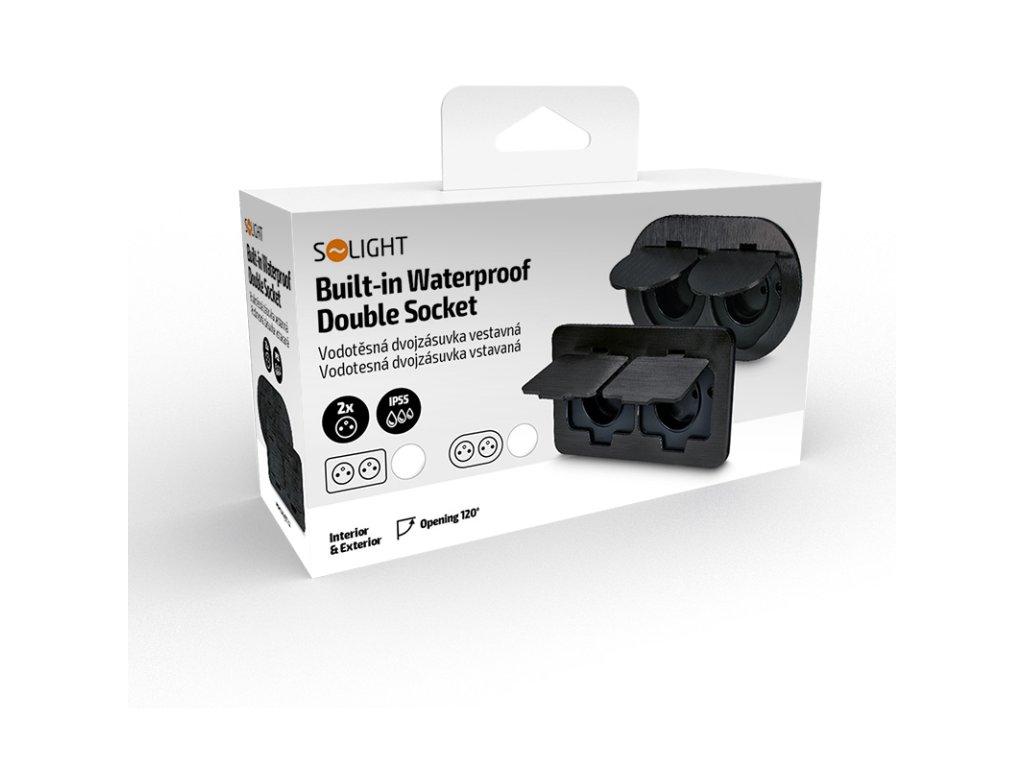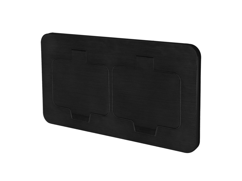 Solight vestavná podlahová dvojzásuvka, IP55, matná černá, obdélníkové víčko