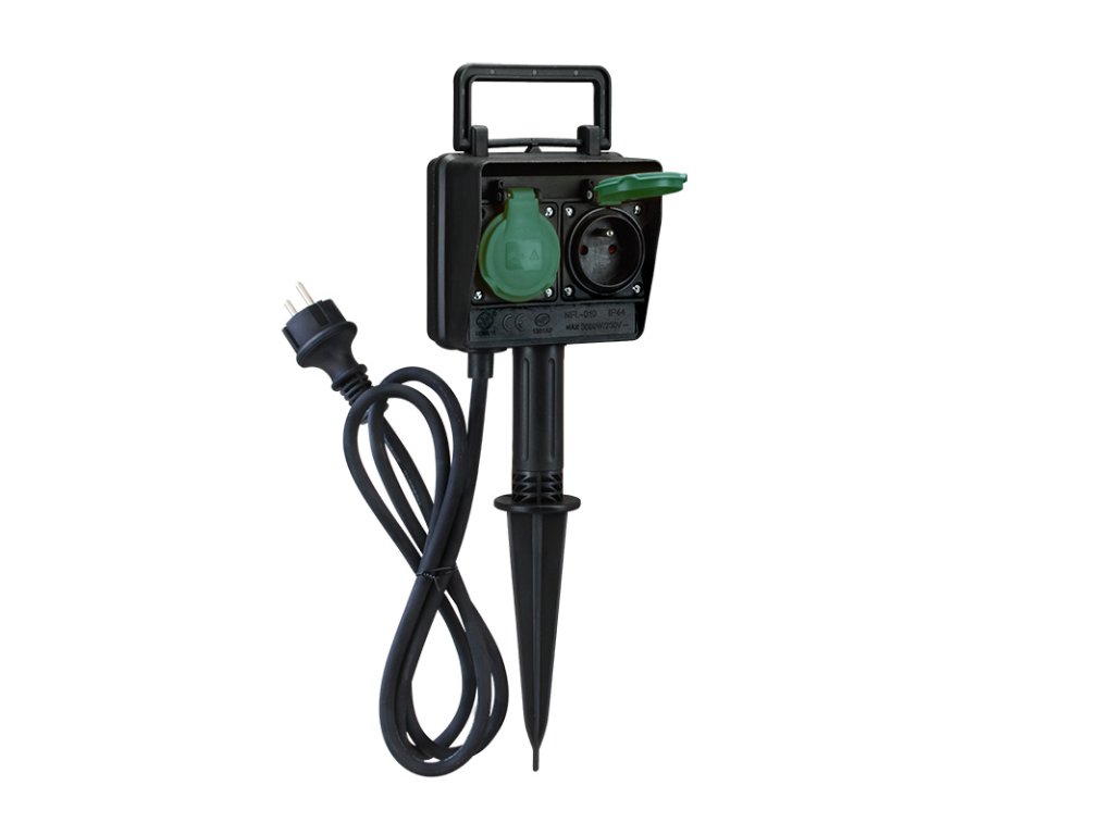1,5 metru dlouhý gumový kabel typu s vodiči o průřezu 3×1,5 mm2 zajišťuje maximální příkon až 3680 W (16 A při 230 V~). Zvládne tak i energeticky náročnější zařízení. Černé provedení se zelenými krytkami zásuvek nenápadně zapadne do každé zahrady.