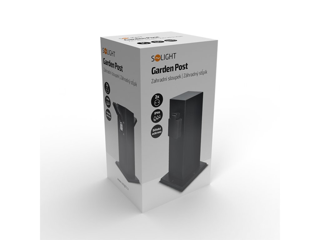 Solight zahradní sloupek IP44, nerez ocel, 2 zásuvky, hranol, černý