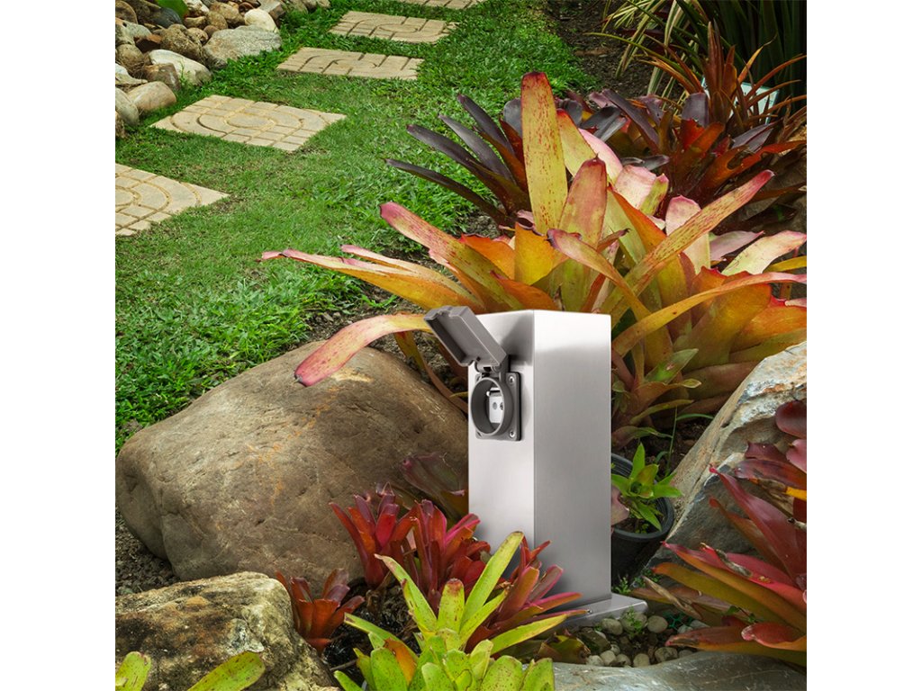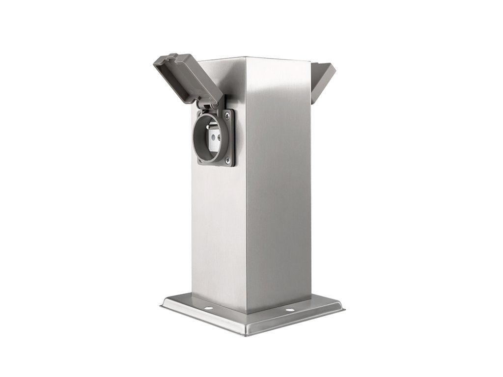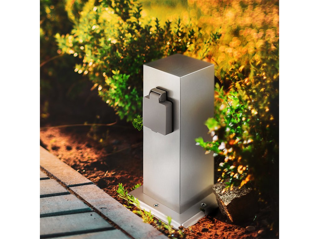Dvě zásuvky s dětskými pojistkami jsou chráněny samouzavíratelnými krytkami, které brání vniknutí vlhkosti a nečistot. Díky krytí IP44 je sloupek vhodný i pro použití za deště nebo ve vlhčím prostředí. Zásuvky zvládnou zátěž až 3680 W (16 A při 230V~), což je ideální pro venkovní osvětlení, zahradní techniku i běžné spotřebiče. Vhodný pro domy, pergoly i firemní areály.