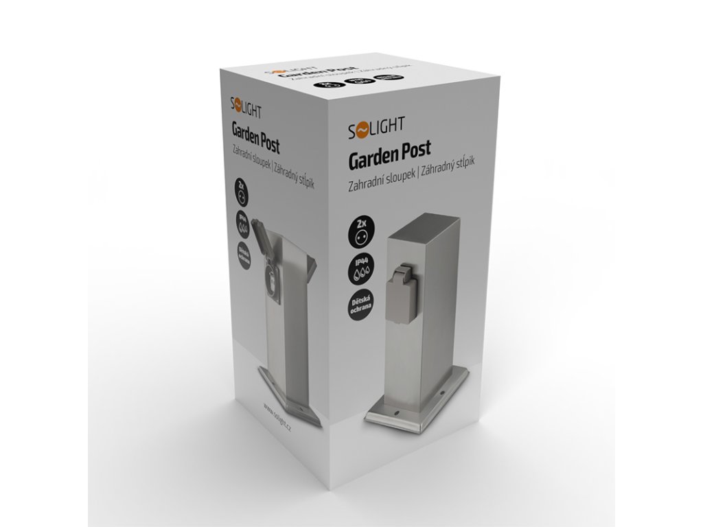 Solight zahradní sloupek IP44, nerez ocel, 2 zásuvky, hranol, stříbrný