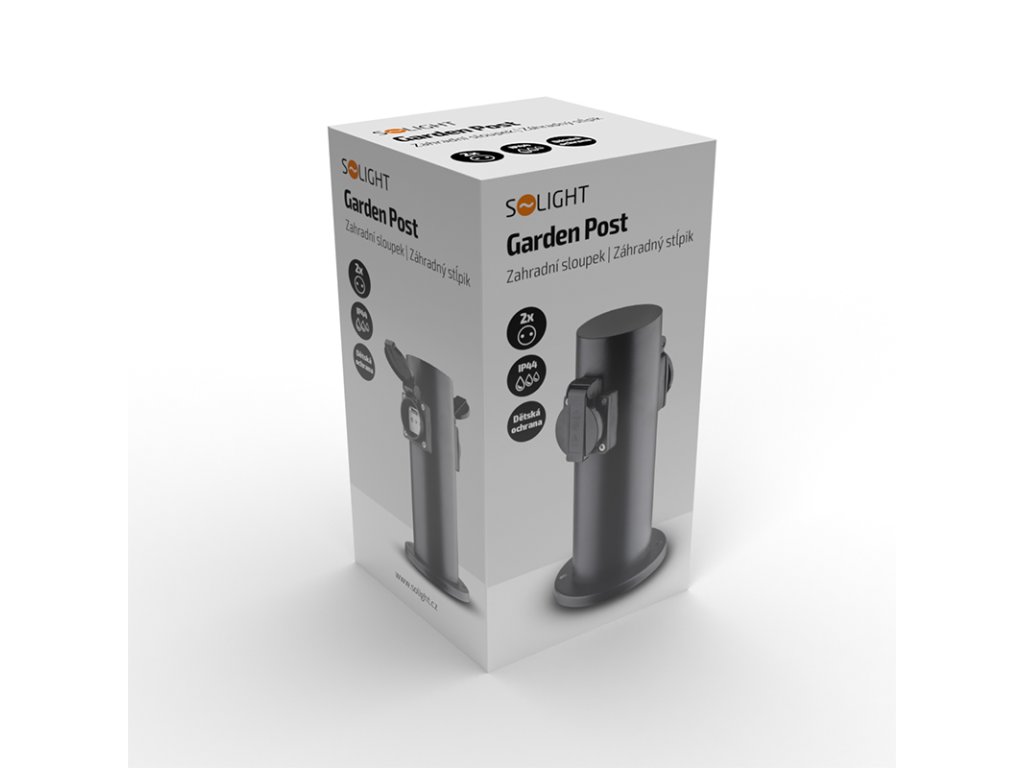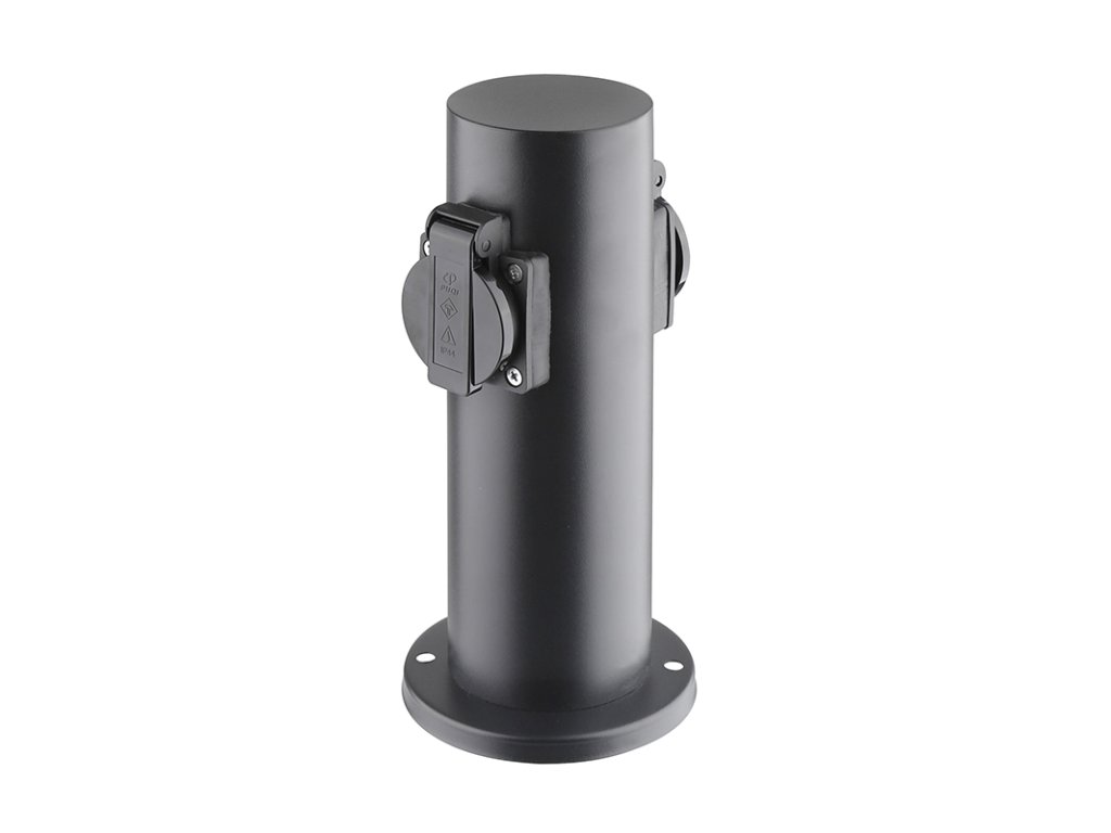 Dvě zásuvky s dětskými pojistkami jsou chráněny samouzavíratelnými krytkami, které brání vniknutí vlhkosti a nečistot. Díky krytí IP44 je sloupek vhodný i pro použití za deště nebo ve vlhčím prostředí. Zásuvky zvládnou zátěž až 3680 W (16 A při 230V~), což je ideální pro venkovní osvětlení, zahradní techniku i běžné spotřebiče. Vhodný pro domy, pergoly i firemní areály.