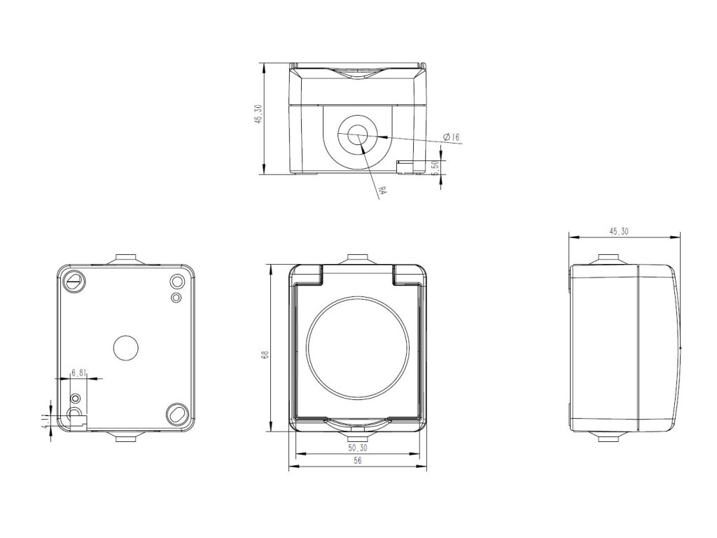Zásuvka je navržena pro maximální zátěž 3680 W, tzn. proudové zatížení 16 A při napětí v síti 230 V~. Krytí IP54 zajišťuje odolnost vůči stříkající vodě i prachu. Samouzavírací víčko a dětské pojistky zajišťují maximální bezpečnost. Jednoduché a spolehlivé řešení pro každodenní použití venku i uvnitř.